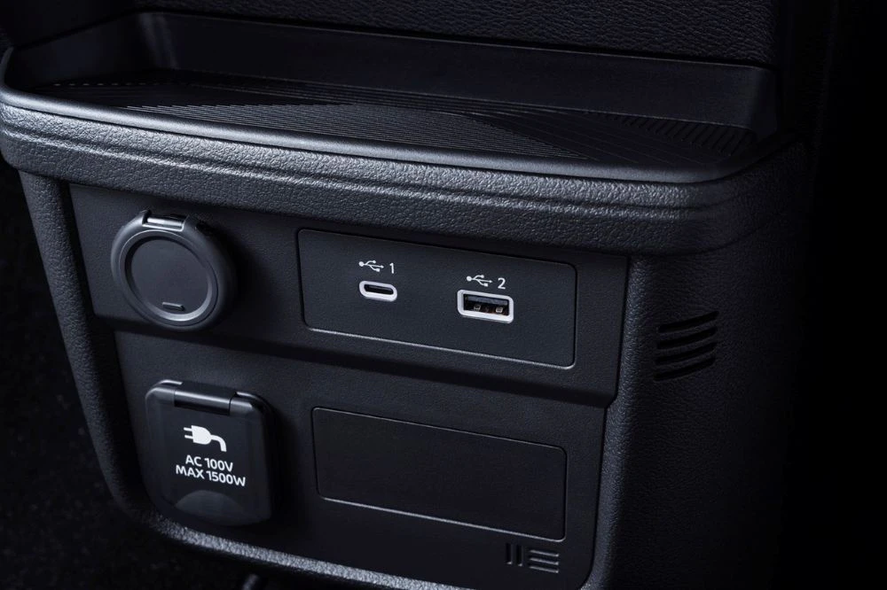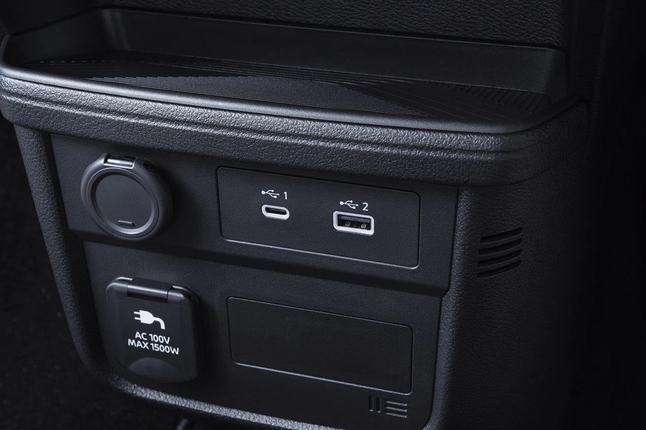 機能面では、充電ポートリッドや充電コネクタにいたずら防止用のロック機構を追加した。また、メーカーオプションとして100V AC電源(1,500W)をラゲッジルームとインストルメントパネルの2ヵ所に設定。これにより、家電製品の使用だけでなく、災害時や企業のBCP対策として移動可能な給電車としての活用が可能となった。
