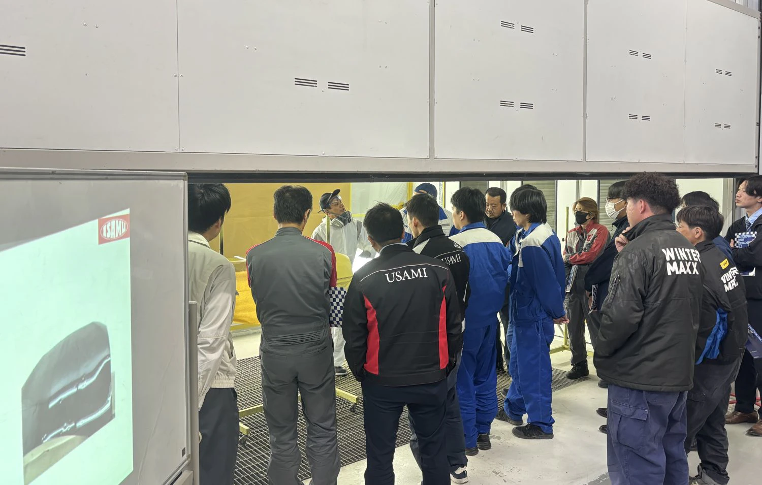座学では、労働安全衛生法の改正とリスクアセスメントへの取り組みについて解説。実習ではノンスチレンスプレーパテ、ビーストチッピング工法、ポリウレアクリヤー NBを紹介し、CRONOS HDを用いたホンダNH-883Pのボカシ塗装を実演した。協賛はイサム塗料。講師はイサム・野末、成田、池田、森脇の各氏。参加者は13人(8社)。
