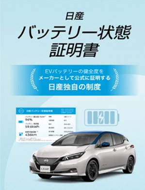 日産、中古BEV向け「日産バッテリー状態証明書」のトライアル運用を開始