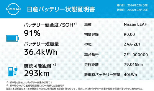 「日産バッテリー状態証明書」のサンプル