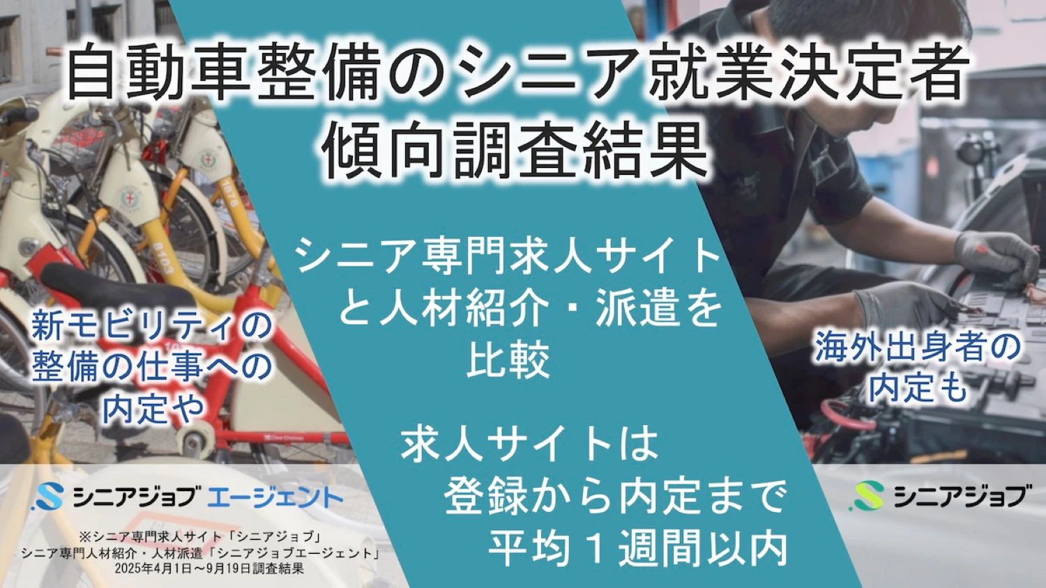シニアジョブ、自動車整備のシニア就業決定者傾向調査の結果を発表