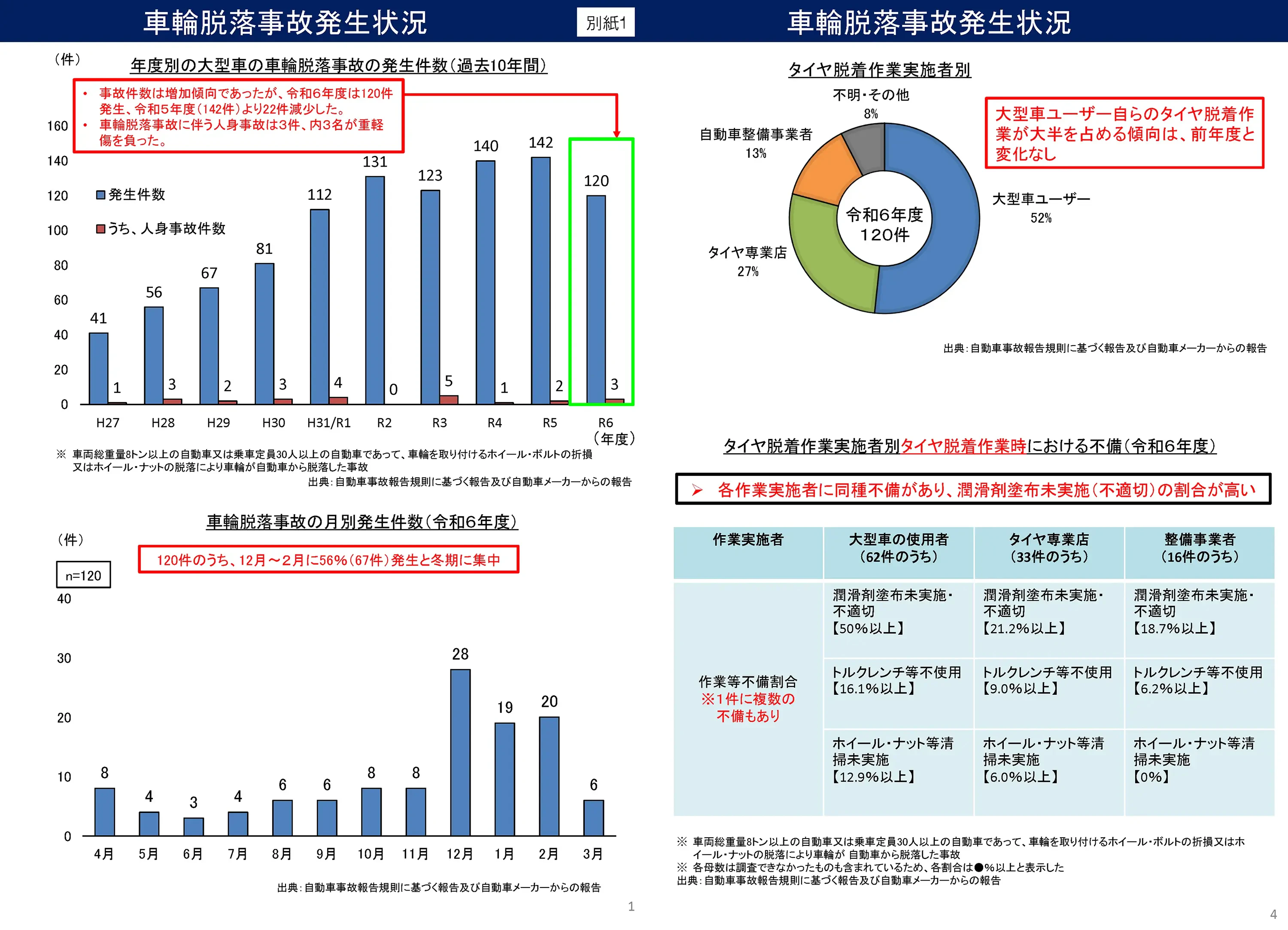 2024年度の大型車車輪脱落事故発生状況調査結果(抜粋)
