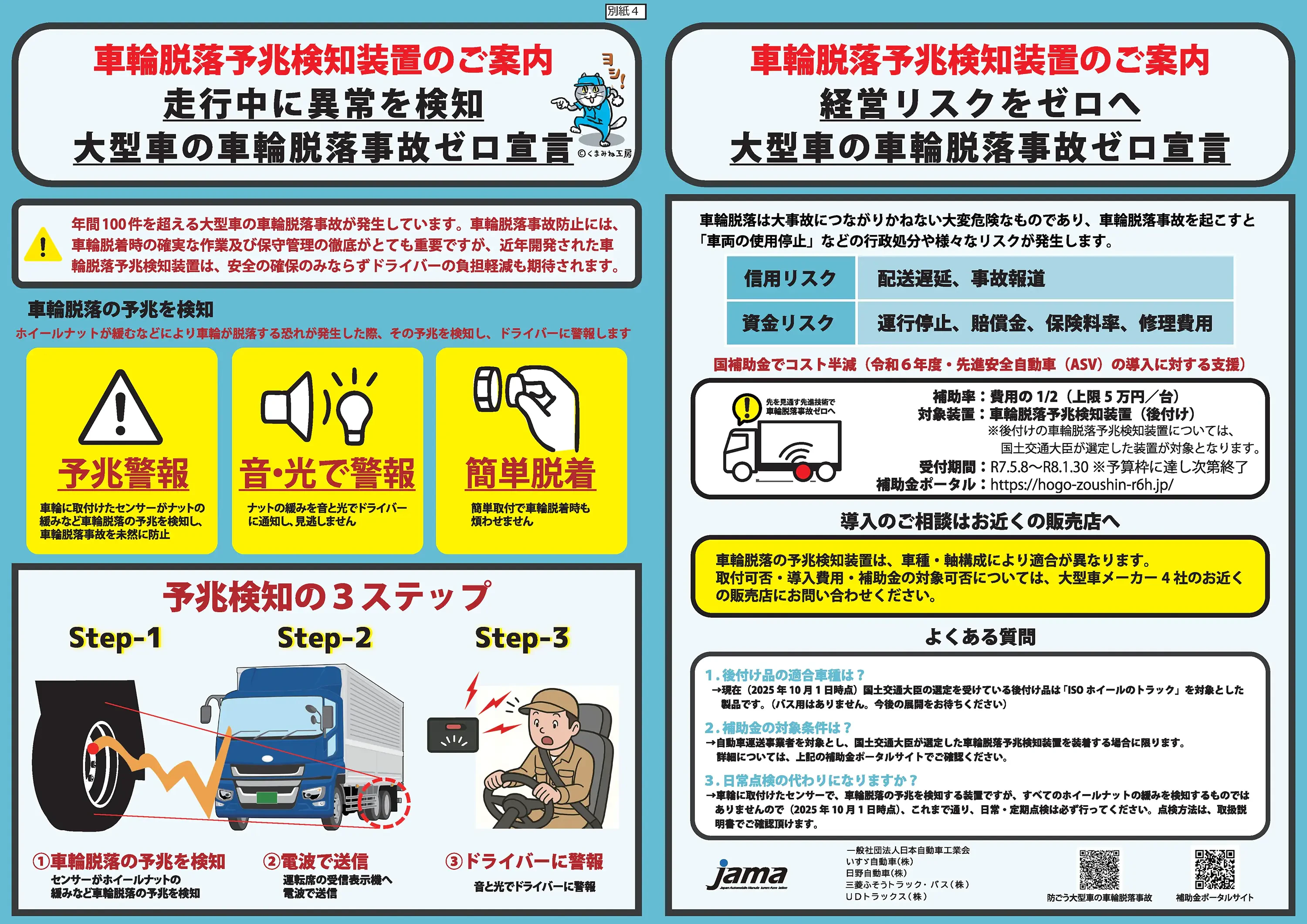 「車輪脱落予兆検知装置導入補助金」の案内チラシ