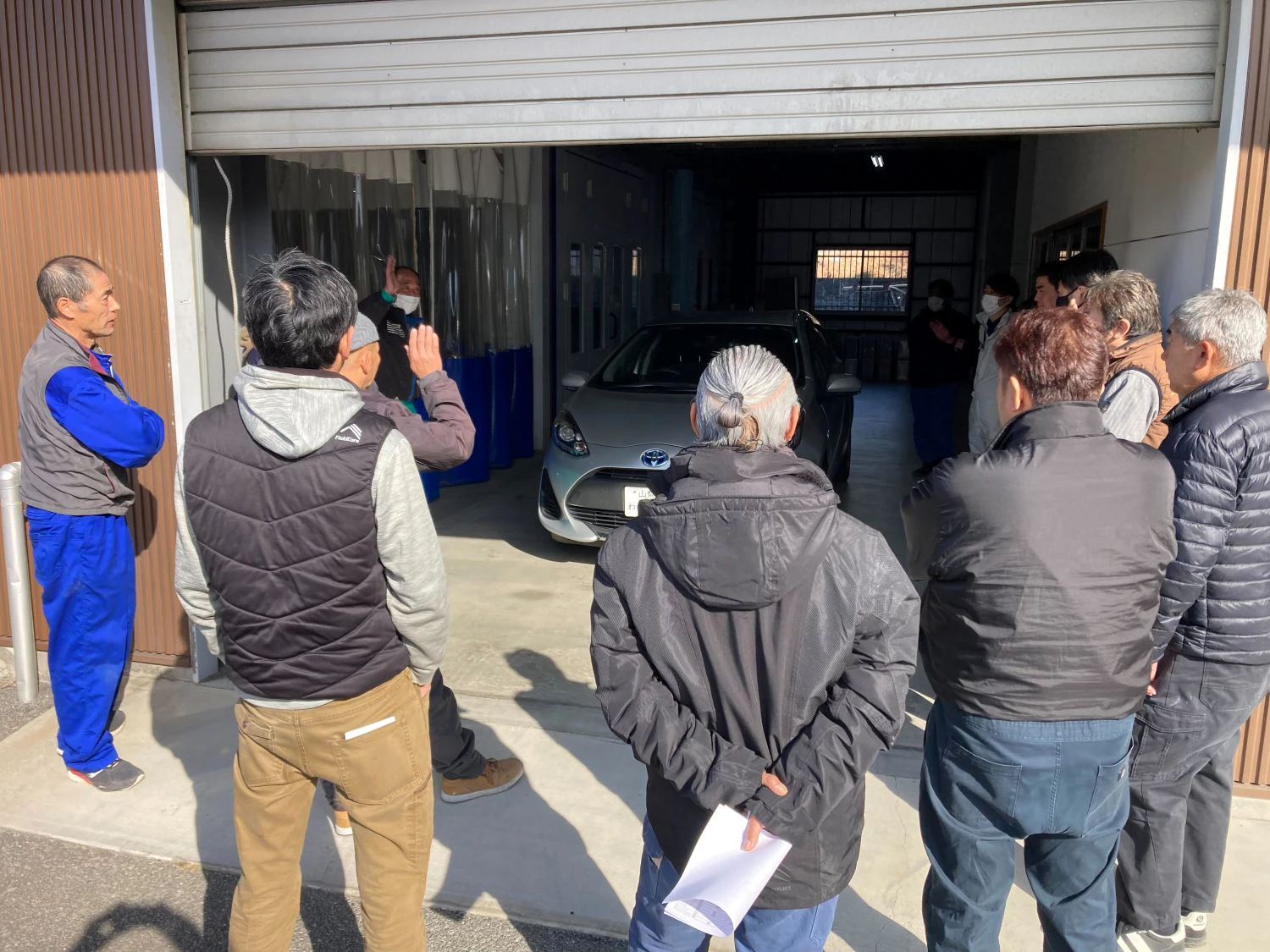 ダイハツ・タント、トヨタ・アクアの最新車種を用いた電子制御装置整備を踏まえた実技講習を行い、後日、座学で法令研修を実施した。講師は同車協・市川、山下の両氏。