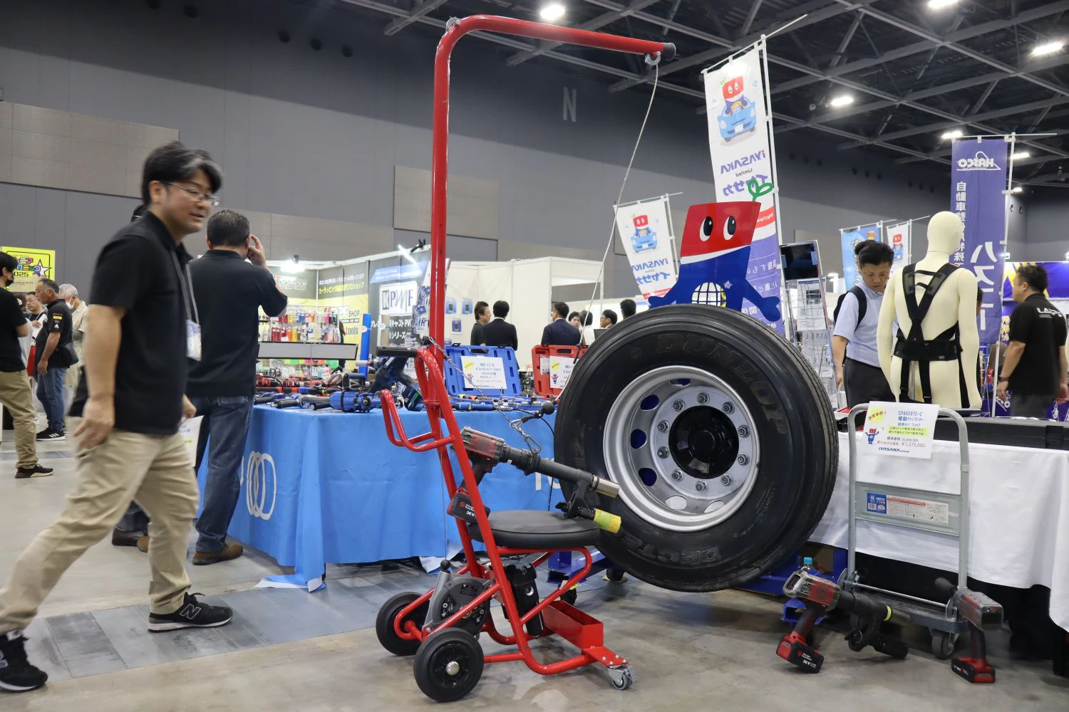 座ったまま作業ができる「エルゴシート CP87029」、 専用アプリで工程、品質管理ができるトルク制御型 ナットランナー「eBlue Tork CP8609」などの整備 用製品、その他主力製品を展示
