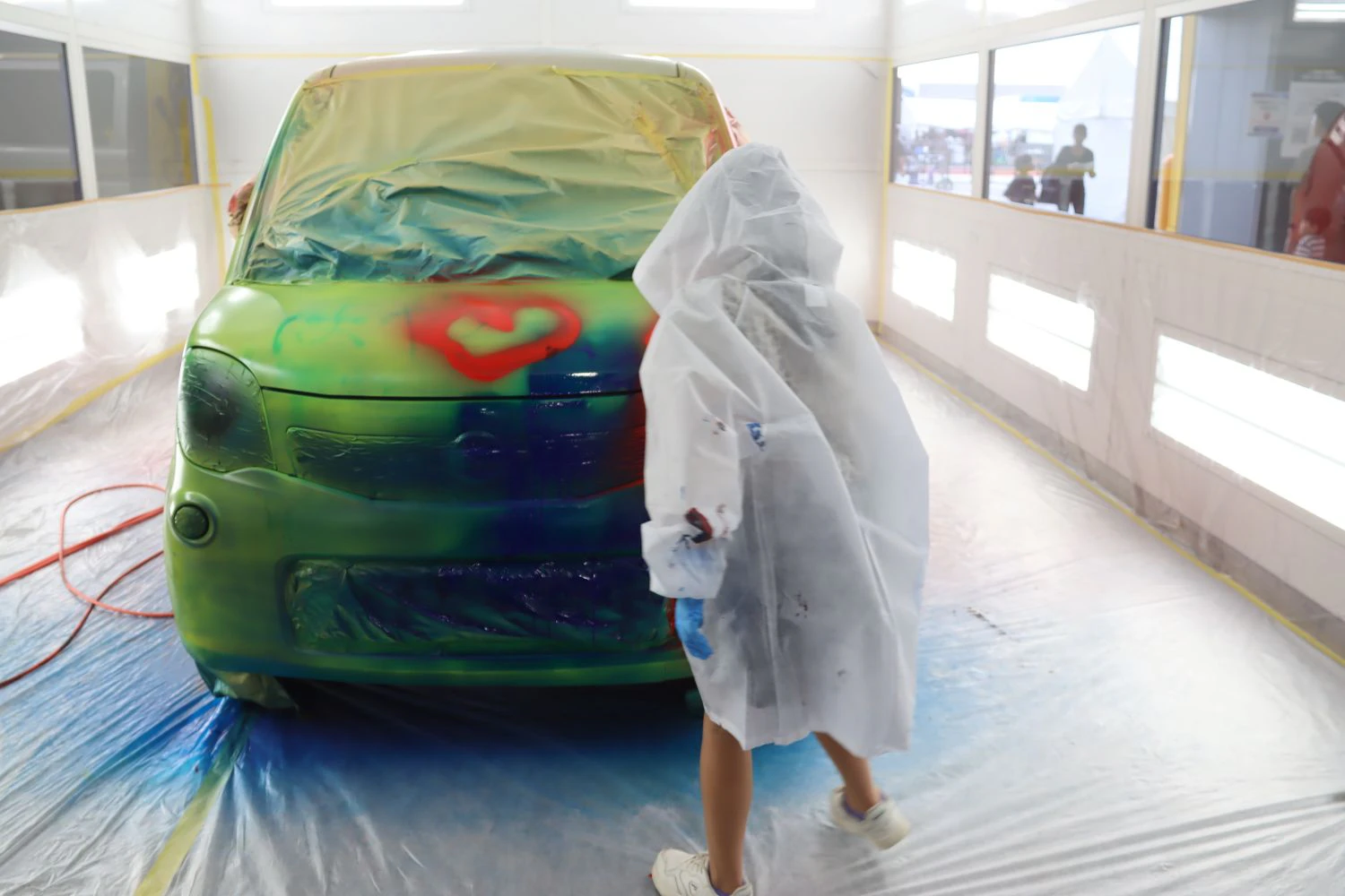ヒーターなど各種製品の展示に加え、子どもが塗装 作業を体験できる塗装ブースを提供。また、フィル ター不要の「エアセパレーター」を展示した