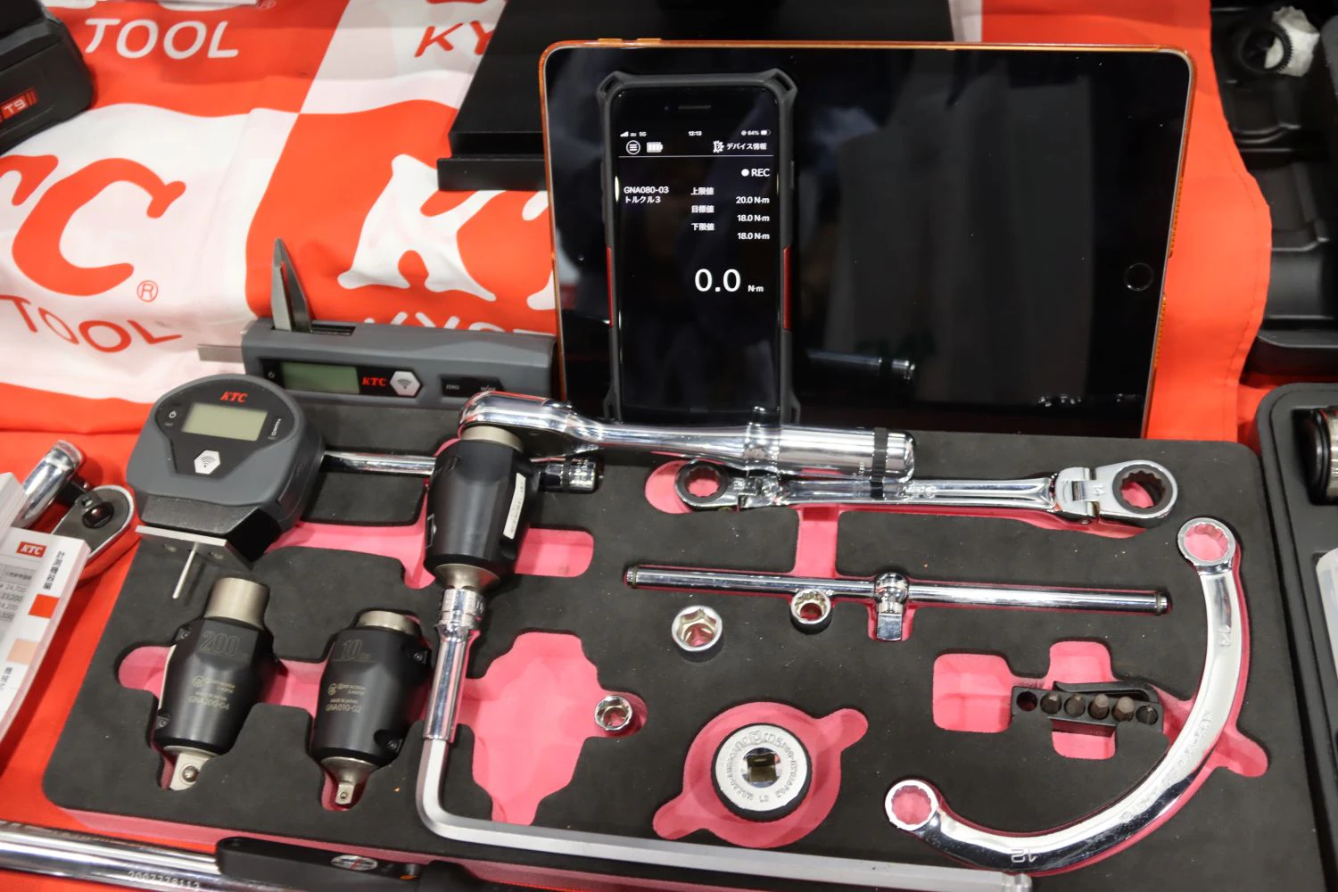 軽量で、狭い場所での作業にも適している「9.5sqコ ードレスラチェットレンチ」や、データをデバイス に送信できる「9.5sqトルクル」を紹介