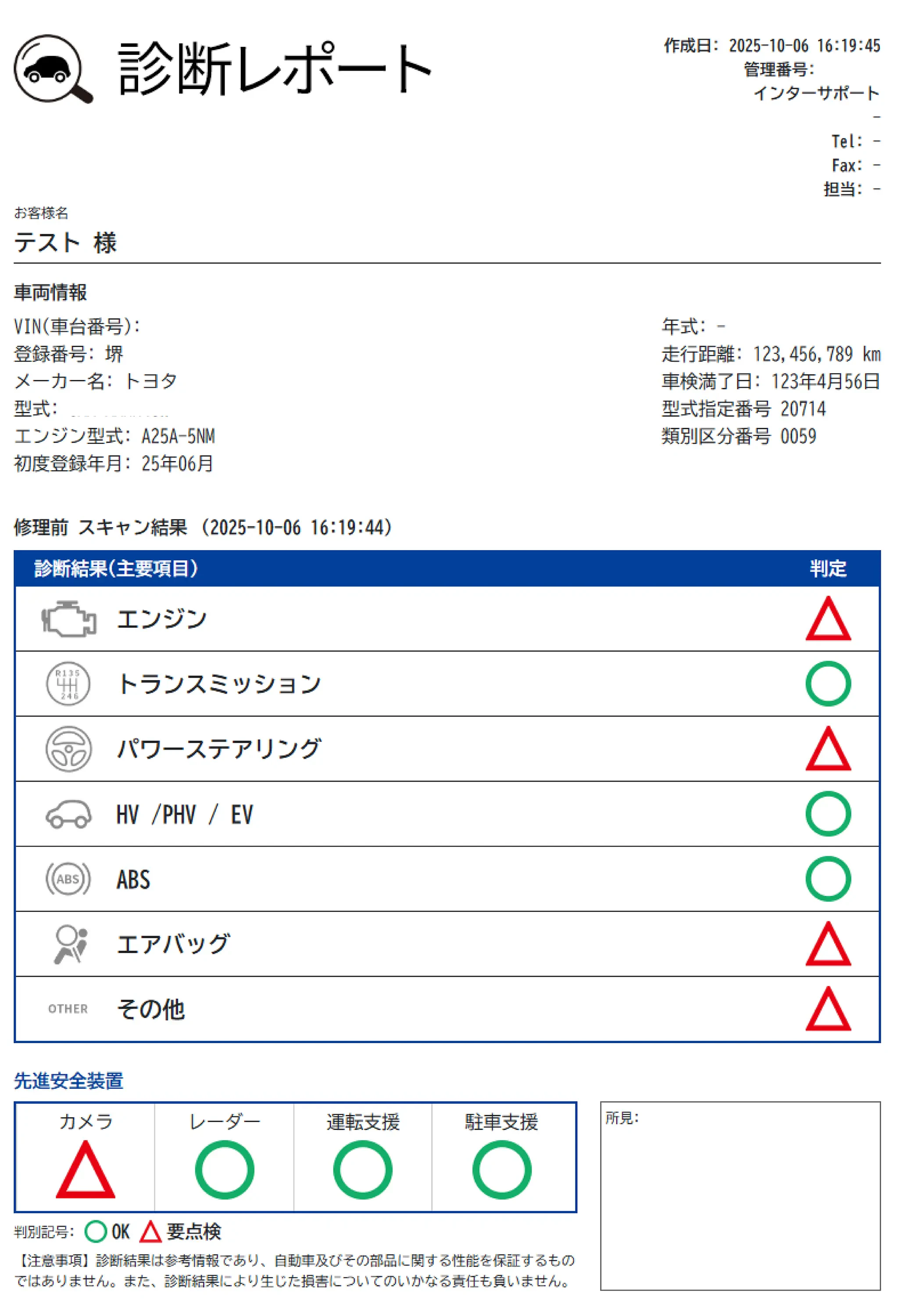 8.整備作業の“前”と“後”を一つのレポートに統合する「整備前・整備後診断レポート」機能を実装