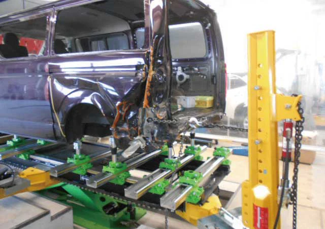 同社の強みは、なんと言っても中破・大破車両への対応だ。従来より鈑金塗装技術に対する取引先からの信頼は厚く、「中破・大破車両はヴァリアスへ」という認知が広まり、必然的に中破・大破車両の入庫割合が高い。そのため、先月にはボデー修正装置1基を新しく入れ換えた。現在、2基のボデー修正装置を存分に活用して、中破・大破車両の修復作業に対応している。