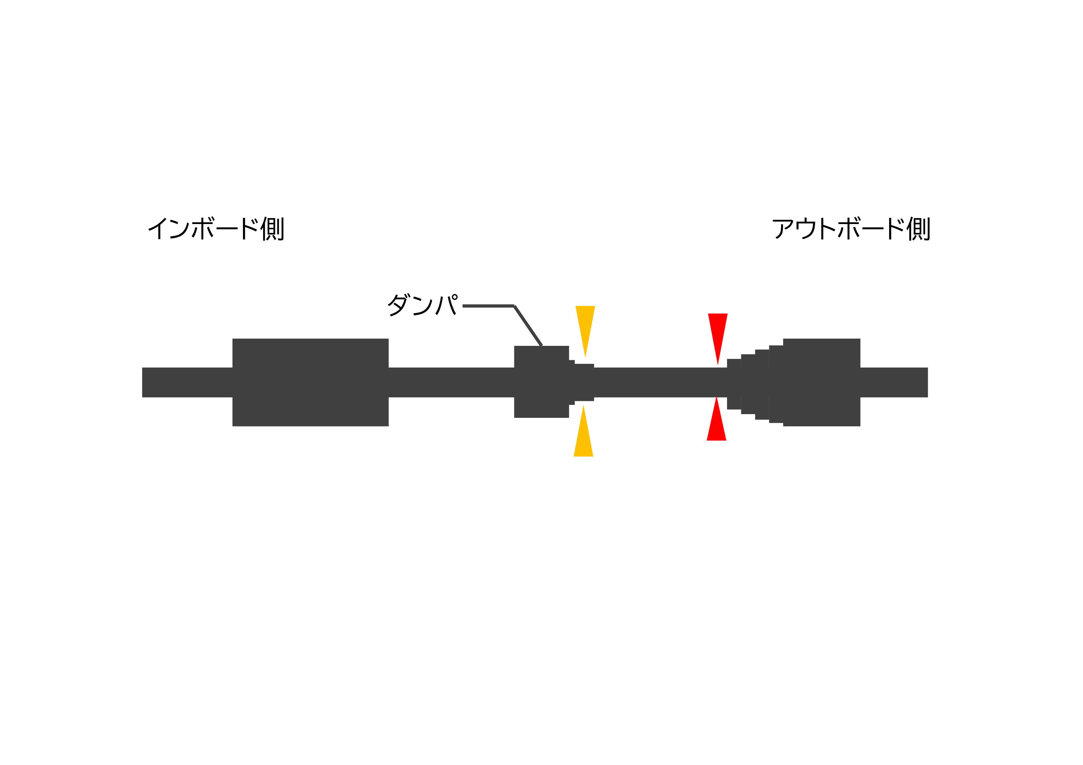 アウトボードブーツの単体交換ができない主な原因は、ドライブシャフトAssyに装着されたダンパ(振動吸収材)付近の直径が、アウトボードブーツ側の直径よりも大きく設計されているためである 。