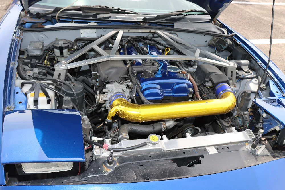かみむら: 吸気はノーマルですが、排気系はフルで変わっています。HKSのエキマニに、SARDのメタルキャタライザー、出口はSACLAMのサイレンサーキットです。すごく良い音がするんですよ。自分でいじったのはDefiの追加メーターを付けたり、ディスプレイオーディオを付けたくらいですね。