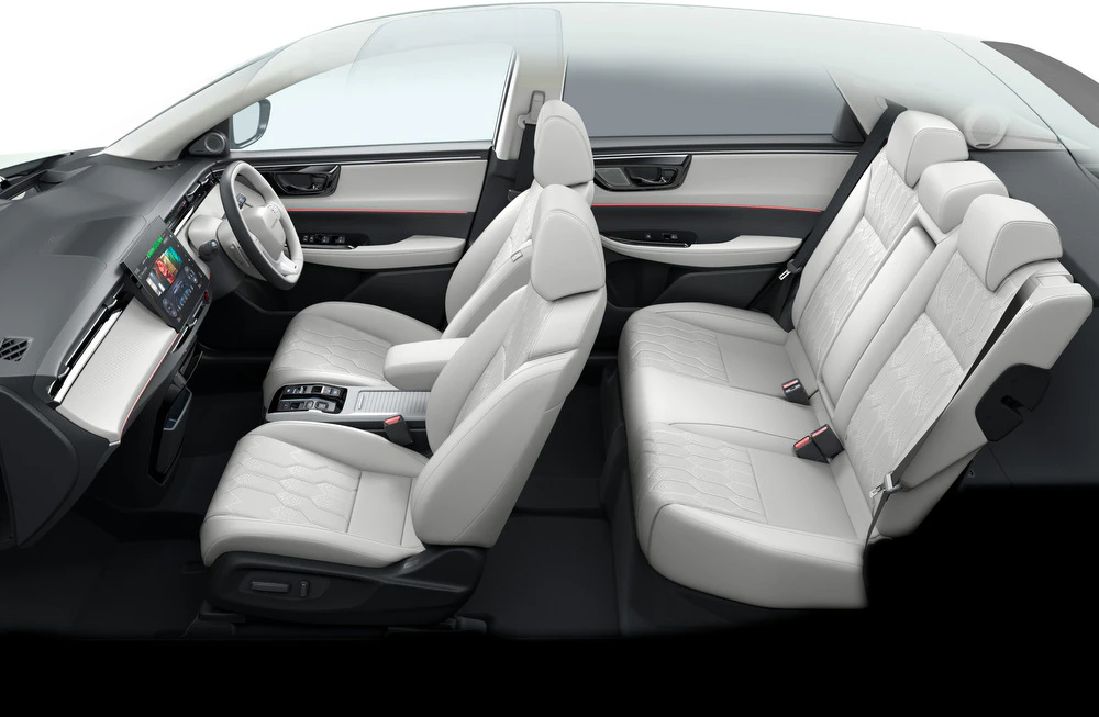 室内空間は「Sukkiri comfort」をテーマとし、開放的な空間と五感に訴える仕立てによる快適性が重視されている。水平基調のシンプルなインストルメントパネルからリアドアまでを連続させたラウンド空間が特徴で、乗員を優しく包み込むラップアラウンドレイアウトが採用された。インパネやドア造形に沿って配置されたLEDアンビエントランプは、ドア開閉時の注意喚起(アンバー点灯)やエアコン温度調節時のアンサーバック(赤・青点灯)といった機能性も併せ持つ。