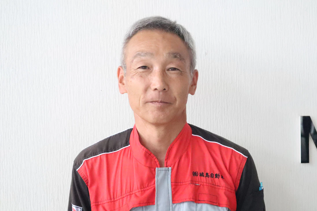 城島工場長は元々は異業種で働いていたが、従兄弟という関係性もあり、35 年ほど前に入社した。その後、実務を積んで二級整備士を取得して、現場で塗装を行っていた。