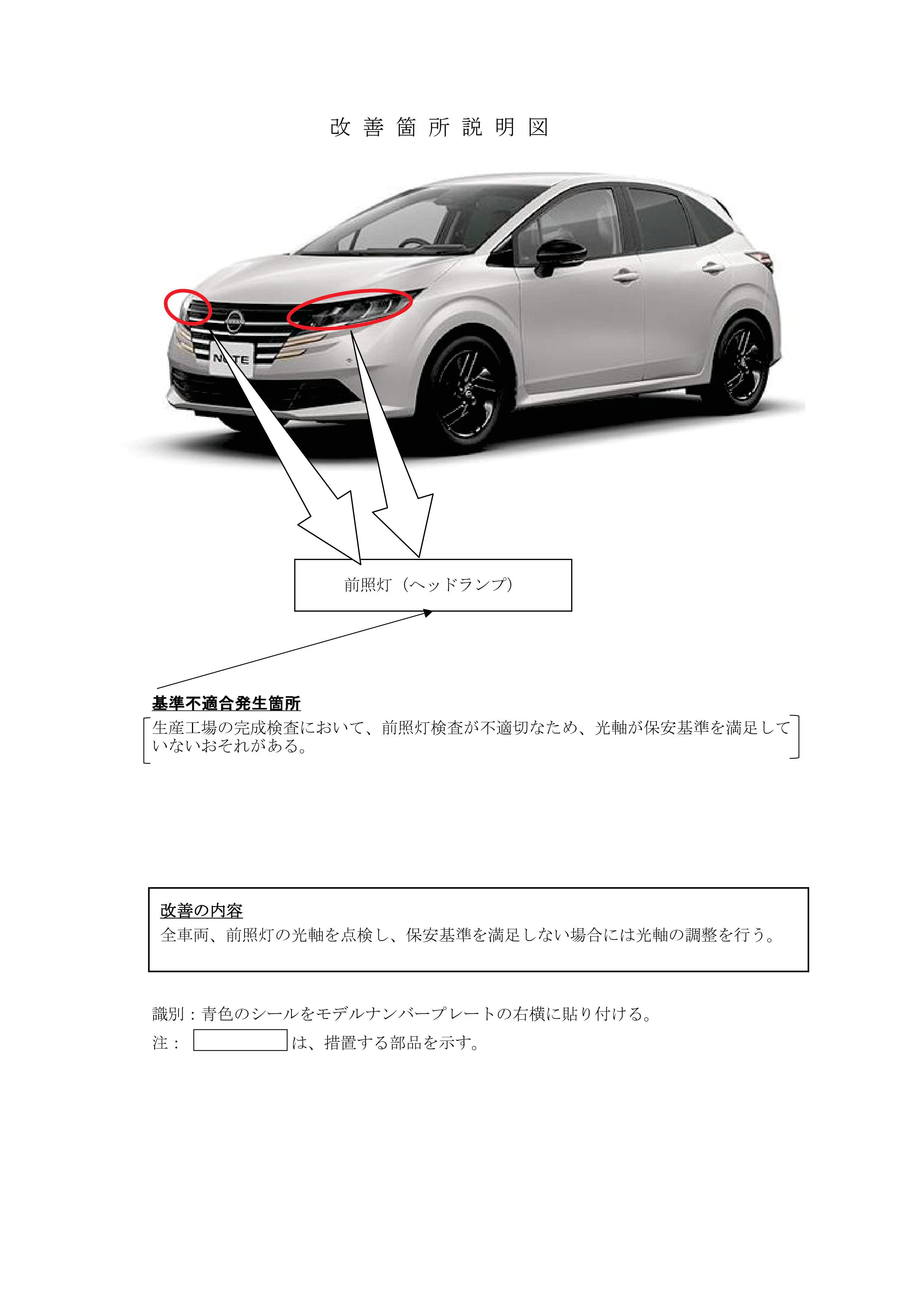 生産工場の完成検査において前照灯検査が不適切であったため、光軸が保安基準を満足していないおそれがあるという。これまでに事故の発生はない。不具合は社内からの情報で発見された。