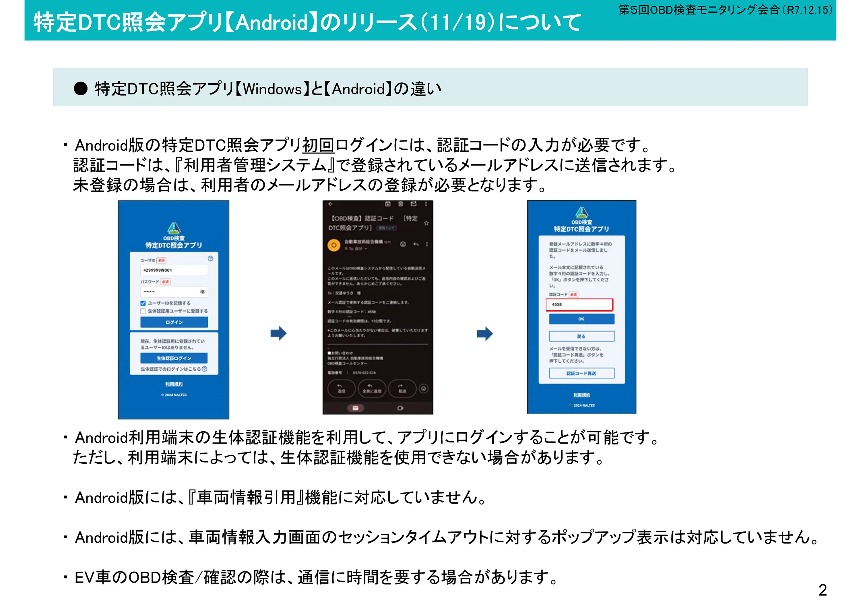 そのほか、特定DTCアプリAndroid版を同年11月19日にリリースしたことに加え、Windows版との違い(概要は下表参照)を解説している。