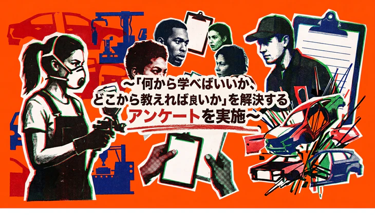 現在、自動車鈑金塗装工場で働く女性技術者及び経営・工場長などのマネジメント側を対象に、現場のリアルな課題をヒアリングするアンケートを実施中。寄せられた意見をベースに、未経験や経験がまだ浅い技術者でも楽しく塗装の基本を学べる実践的な講習会を企画することを目的としている。これは、安心して技術を習得できる環境を整え、離職者を減らすことで自補修業界の発展に繋げていく試みの第一弾である。