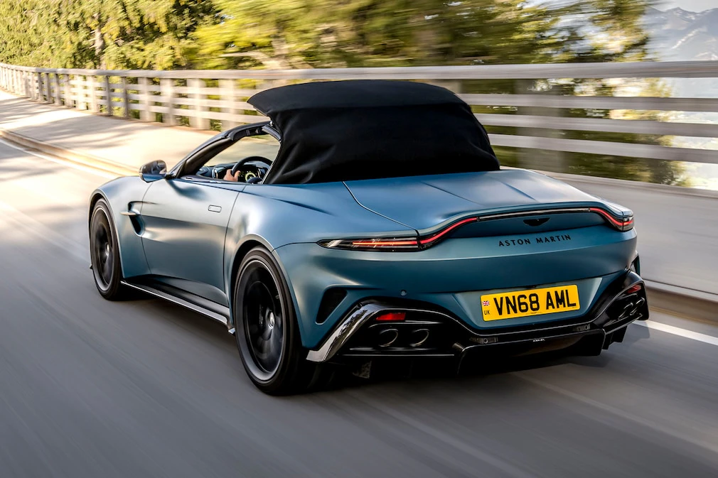 わずか6.8秒の我慢が必要だ。その速さでルーフが後方に跳ね上がり、「マツダMX-5」以外の他のロードスターのルーフをすべて凌駕する。すると、朝の風が耳元を吹き抜け、数秒後には暴風のような強さに変わる。突然、800Nmのトルクが後輪の太いタイヤに伝わり、「ヴァンテージ」はボンドの鋼鉄の拳が近接戦闘で放つ力と同じ勢いで前へ飛び出す。
