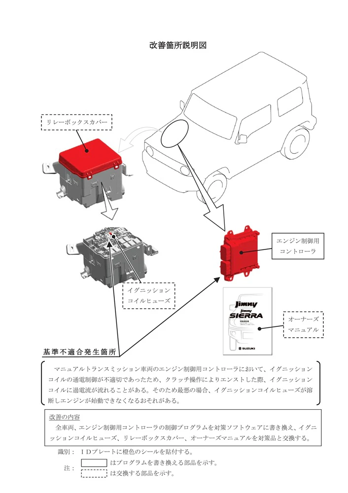 スズキは2月5日、エンジン制御用プログラムに不備があるとして、軽四輪駆動車「ジムニー」計1,211台のリコール(回収・無償修理)を国土交通省に届け出た 。最悪、クラッチ操作ミスでエンストした場合、エンジンが再始動できなくなるおそれがある 。