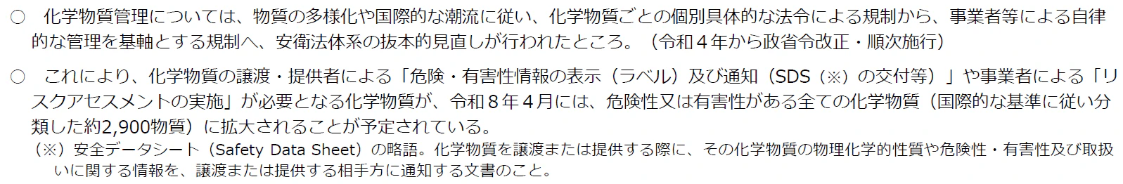 ・労働安全衛生法の新たな化学物質規制について(厚生労働省) :制度の全体像や最新の施行スケジュール