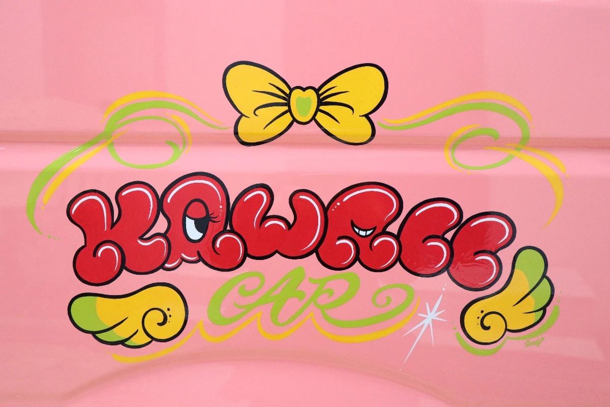 ピンストライパーが直接描いたKAWAII CARのロゴ。カワイイが刺激的!