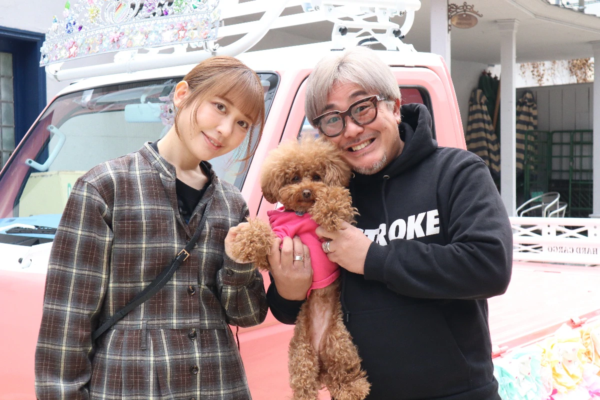 KAWAII LAB.のアイドルプロデューサー・木村ミサ氏(左)と佐々木裕一社長と愛犬のポンズちゃん。人間に興味がなく転生を願ってやまない筆者にとってこの日一番KAWAIIだったのはポンズちゃんだった