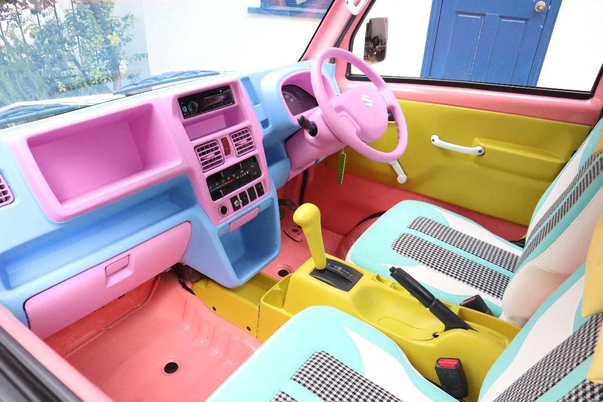 内装はポップなパステルカラー。塗ったのは40代後半のおっさんたちというのもまた渋い