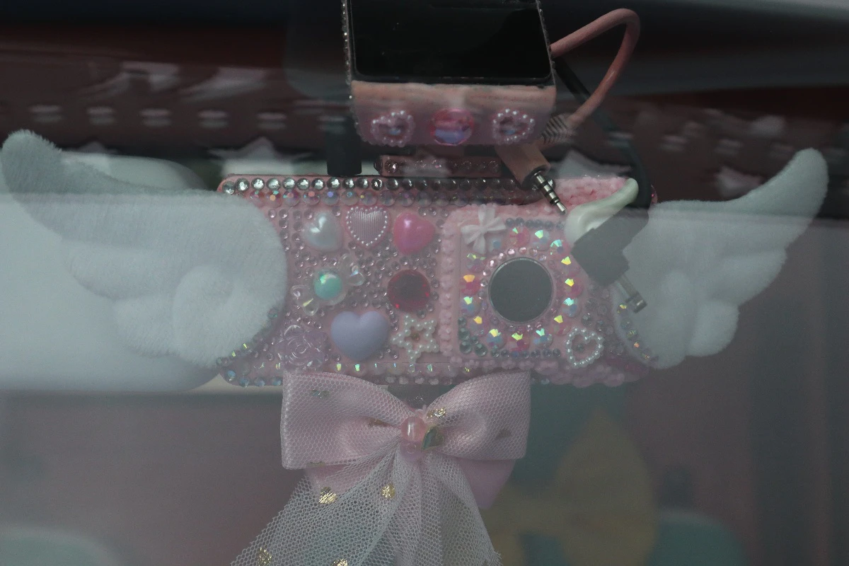デコレーションされたドラレコ。不思議なものでじっと見ているとカワイイが理解できそうな気がしてくる(46歳独身)