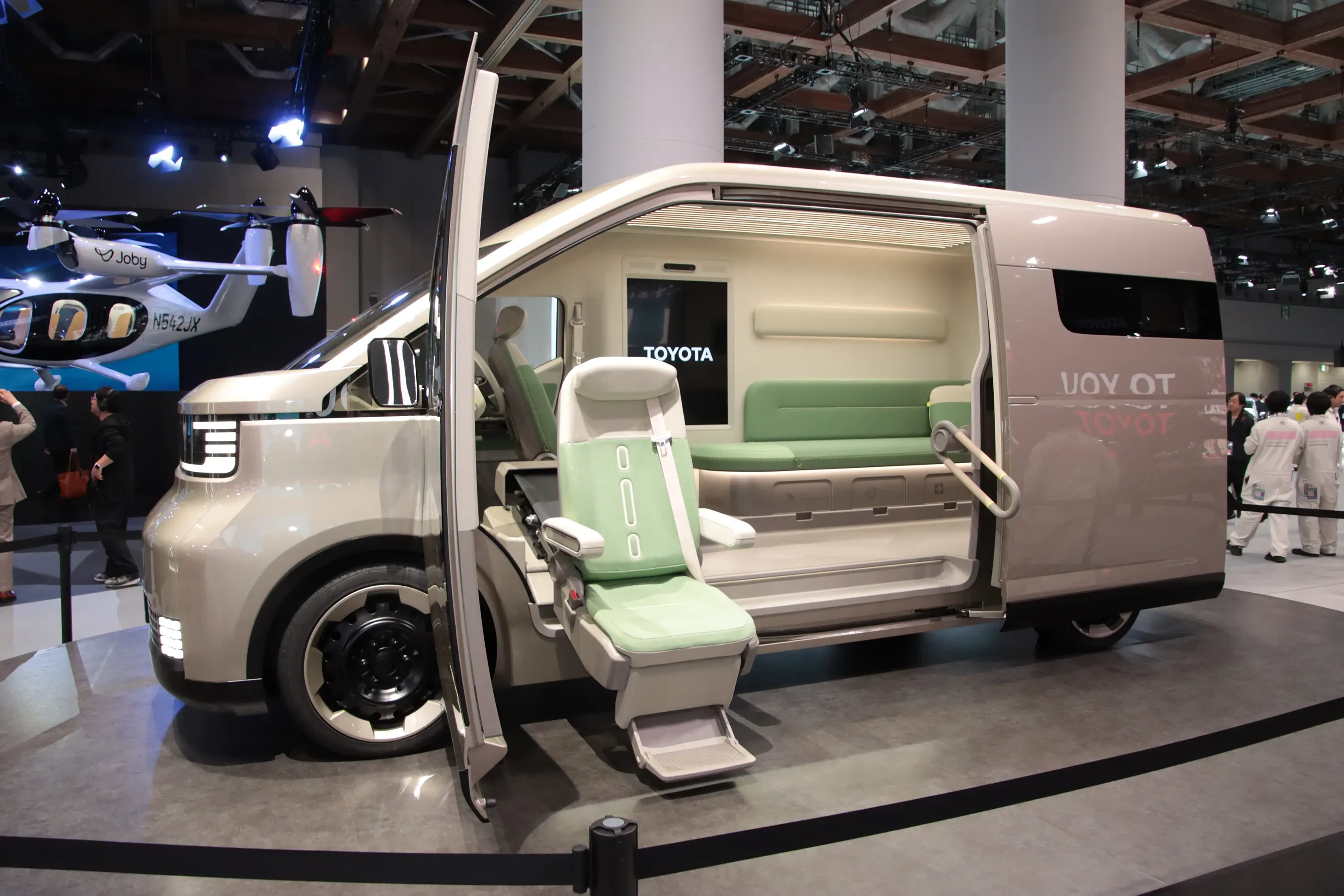 また、前回の「ジャパンモビリティショー2023」(以下、JMS2023)の「カヨイバコ」を発展させた商用バンとして、次世代「ハイエース」のコンセプトモデルを出品。短いボンネットをもつ助手席側センターピラーレスボディを採用し、最新の衝突安全基準に対応しながら、側面開口部を最大限拡大して、人の乗り降りや荷物の積み下ろしを容易にする狙いが見て取れる。