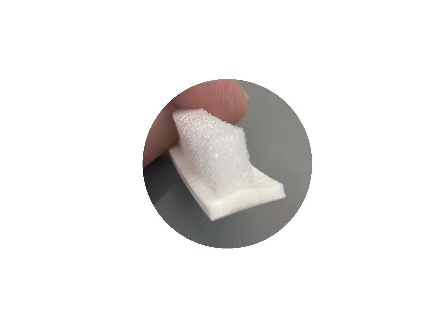 特徴的なT型フォームですき間を埋めることで、なだらかなエッジを実現。フォームは気密性、柔軟性が高く塗料漏れを防止する。テープはのり残りが少なくきれいにはがせ、前面にのりがないためボカシ作業にも対応。サイズ:幅10mm×長さ25m(切れ目なし)。