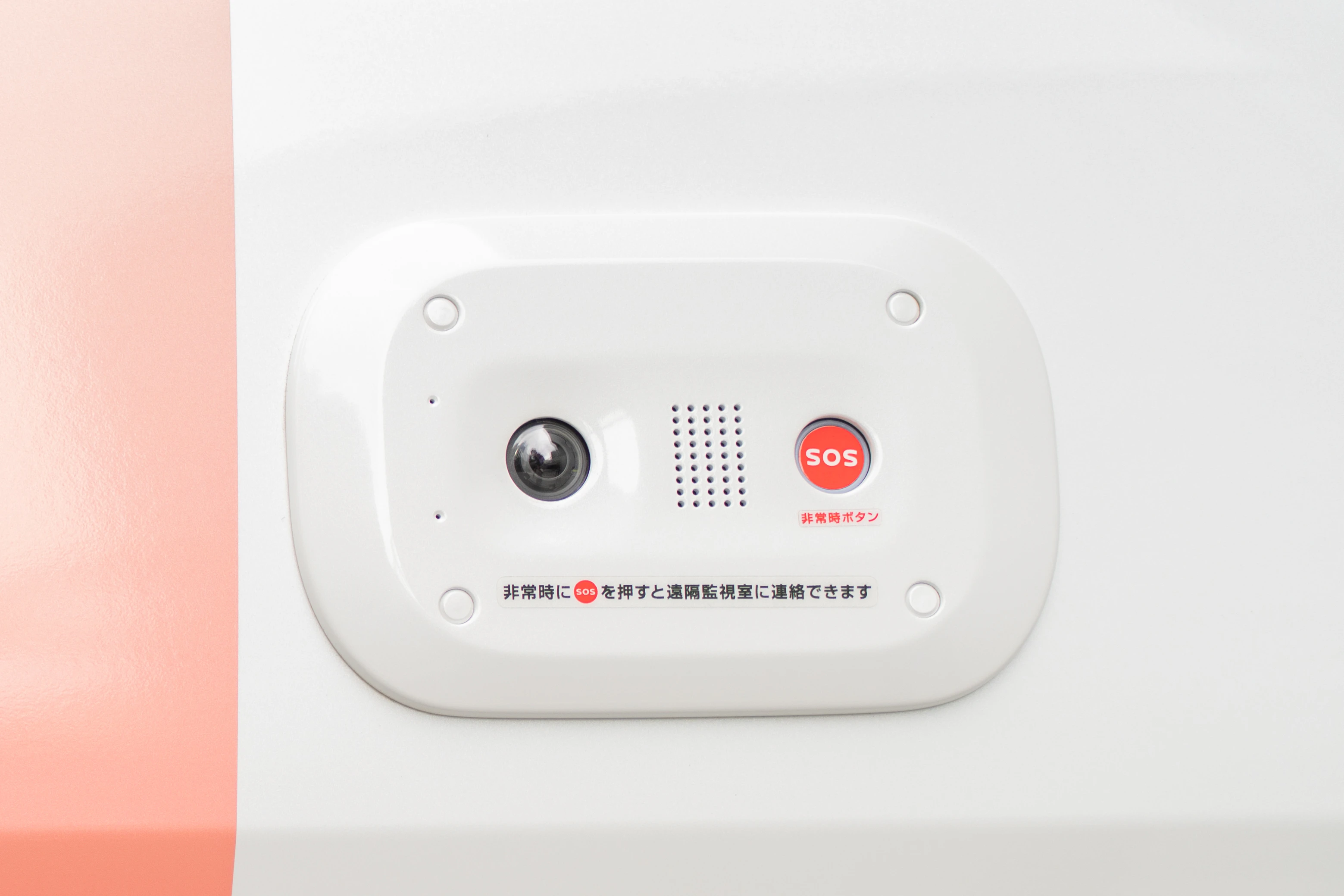 車両の外部に遠隔監視室に連絡できる非常ボタンが設置されている