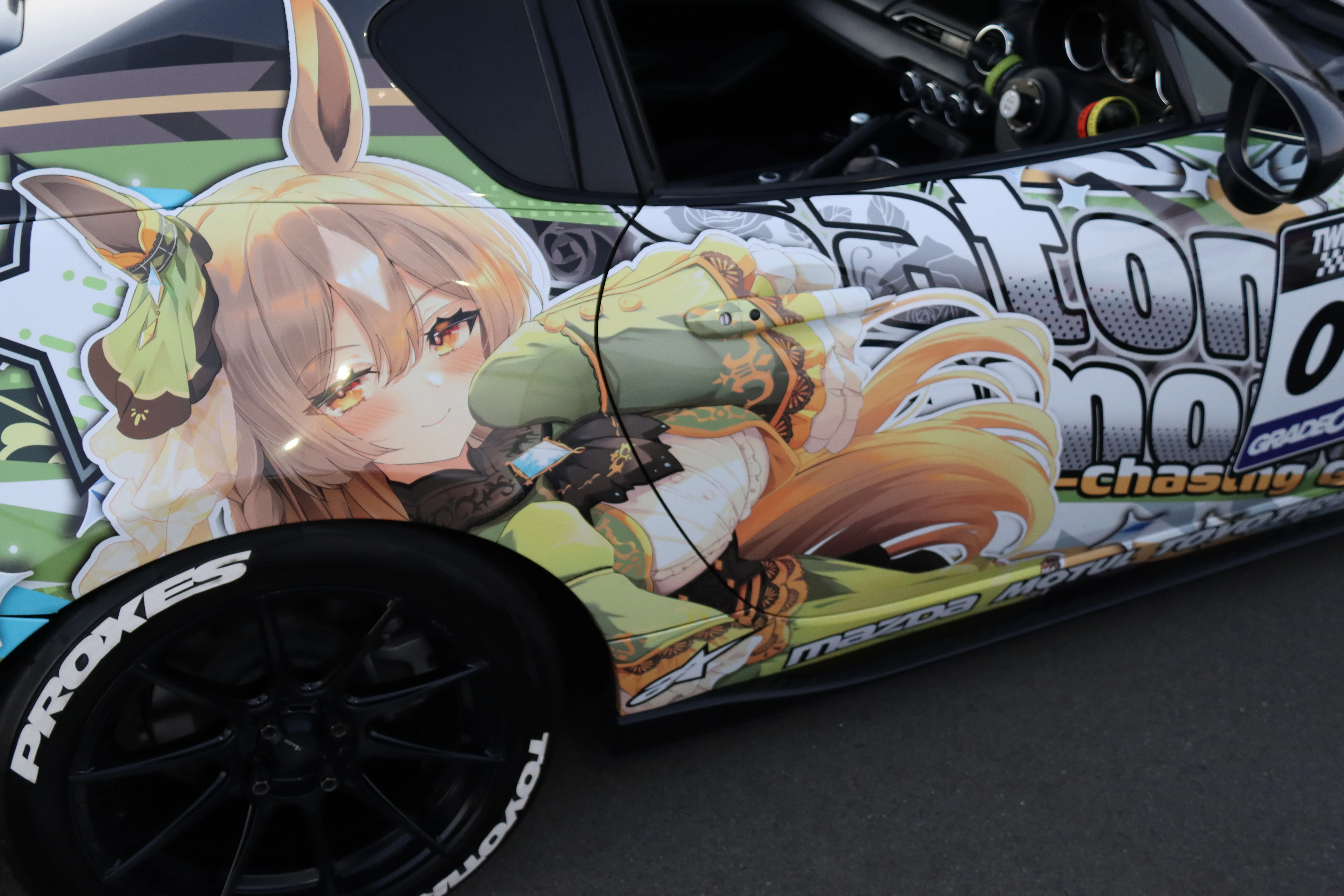 痛車の世界では、施工が完了するとSNSで報告を投稿する文化があるんです。その際に、お世話になったショップやデザイナーさんの名前を挙げるのが一般的で、それを見て私も連絡を取りました。