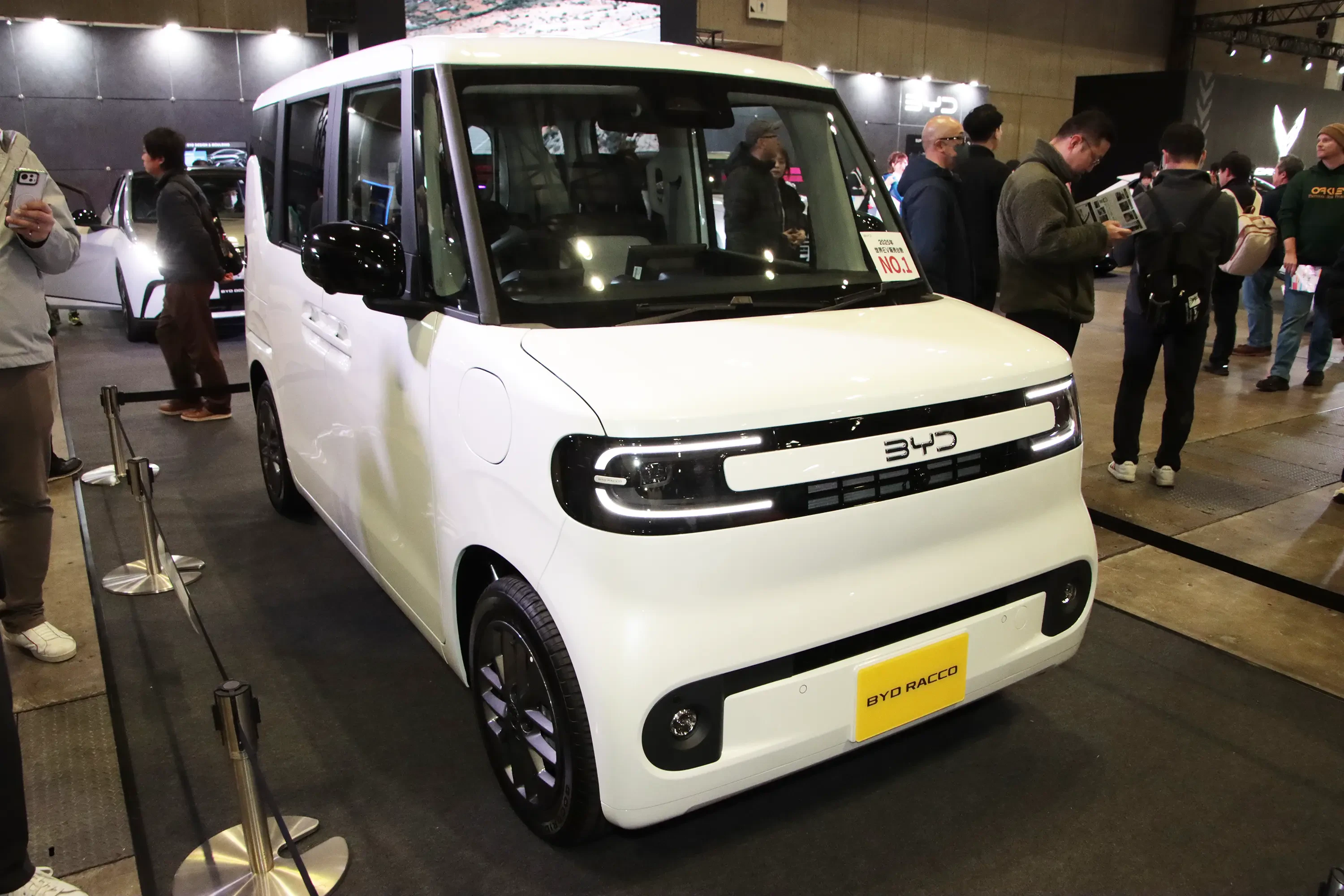 2026年夏発売予定の全電動超背高軽ワゴン「ラッコ」のプロトタイプを、ジャパンモビリティショー2025に続き展示。プレスカンファレンスでは、同年上半期に「ドルフィン」と「アット3」のマイナーチェンジモデル、同年後半に小型SUV「アット2」とステーションワゴン「シール6」を日本へ導入する計画を明らかにした。