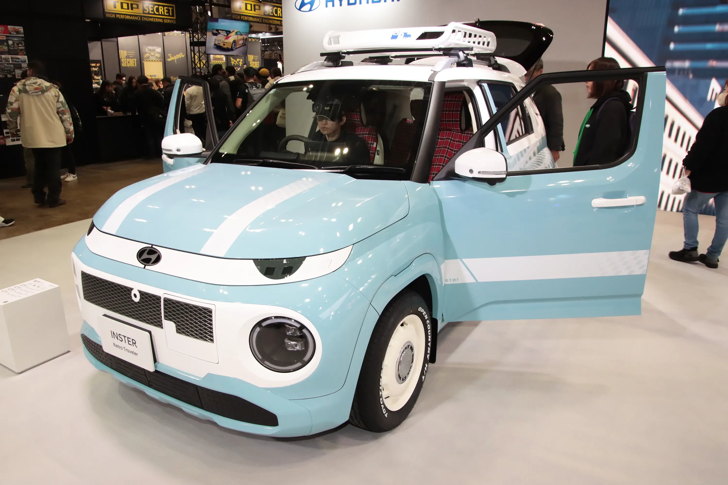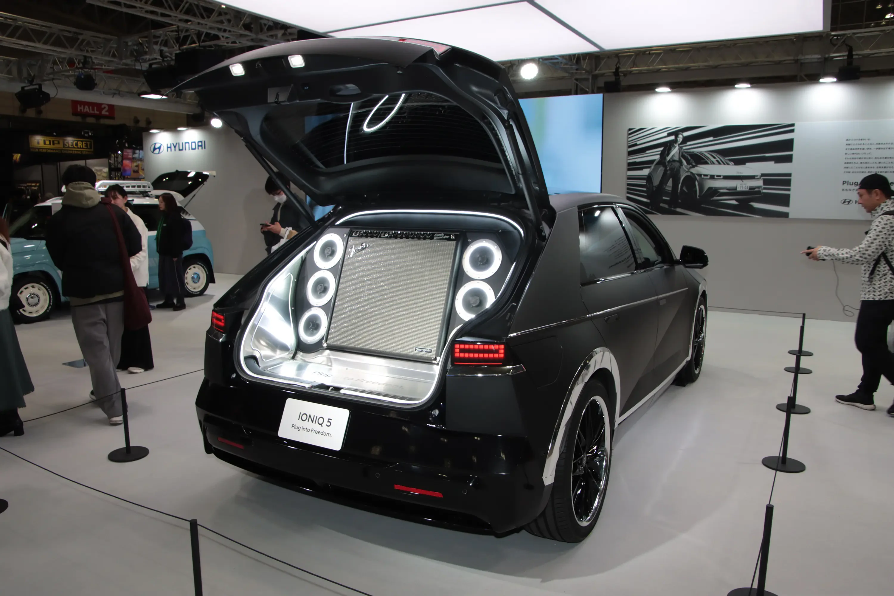 ギタリストのMIYAVI氏とコラボレーションした「アイオニック5」の荷室にギターアンプを搭載した「Plug into Freedom.」と、「インスター」をレトロテイストに仕立てた「レトロトラベラー」、2台のカスタマイズコンセプトカーを出品した。