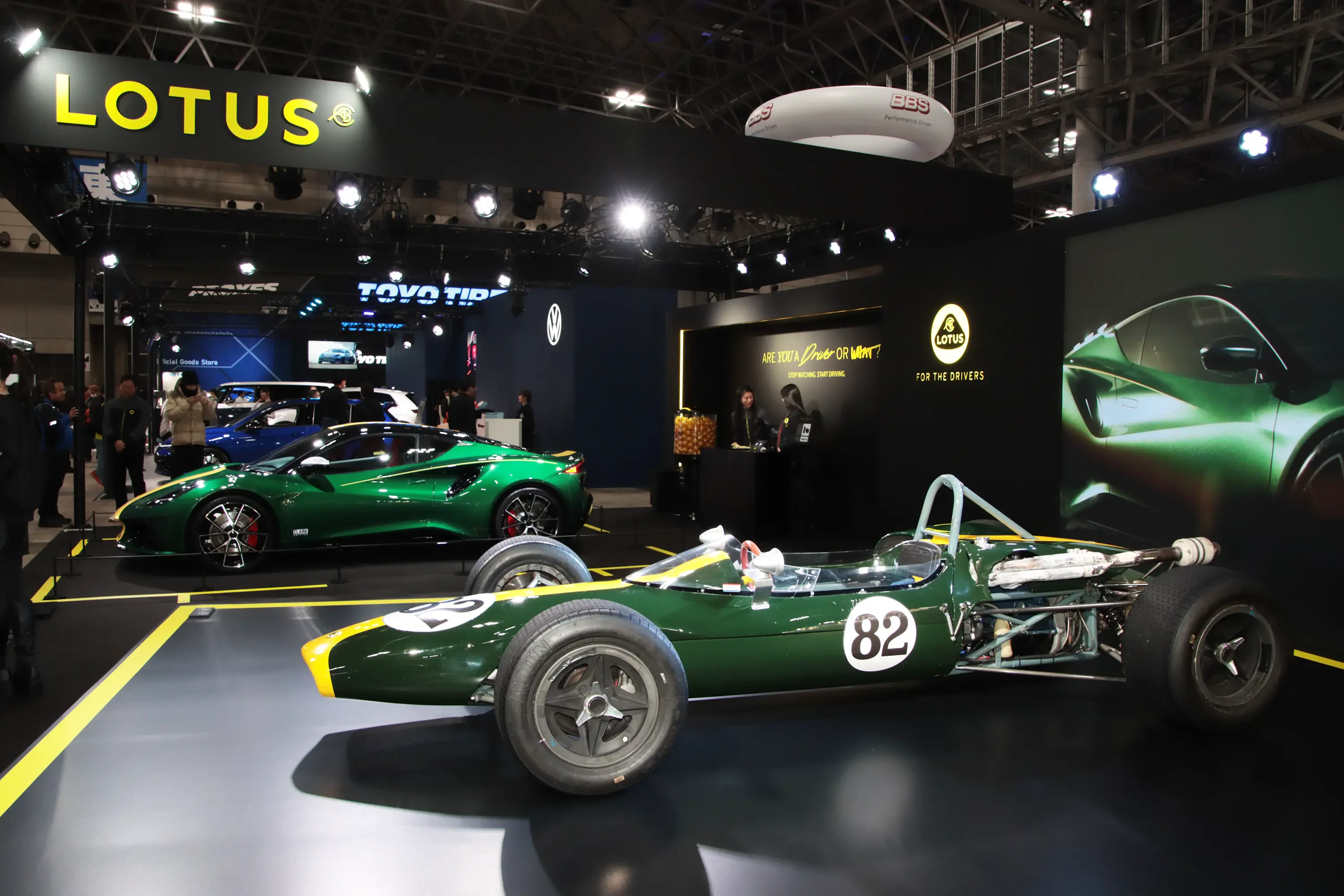 1960年代にロータスで活躍したF1ドライバー、ジム・クラークの名を冠した「エミーラ」の特別仕様車「クラークエディション」と、フォーミュラカー「41」の1968年モデルを展示した。