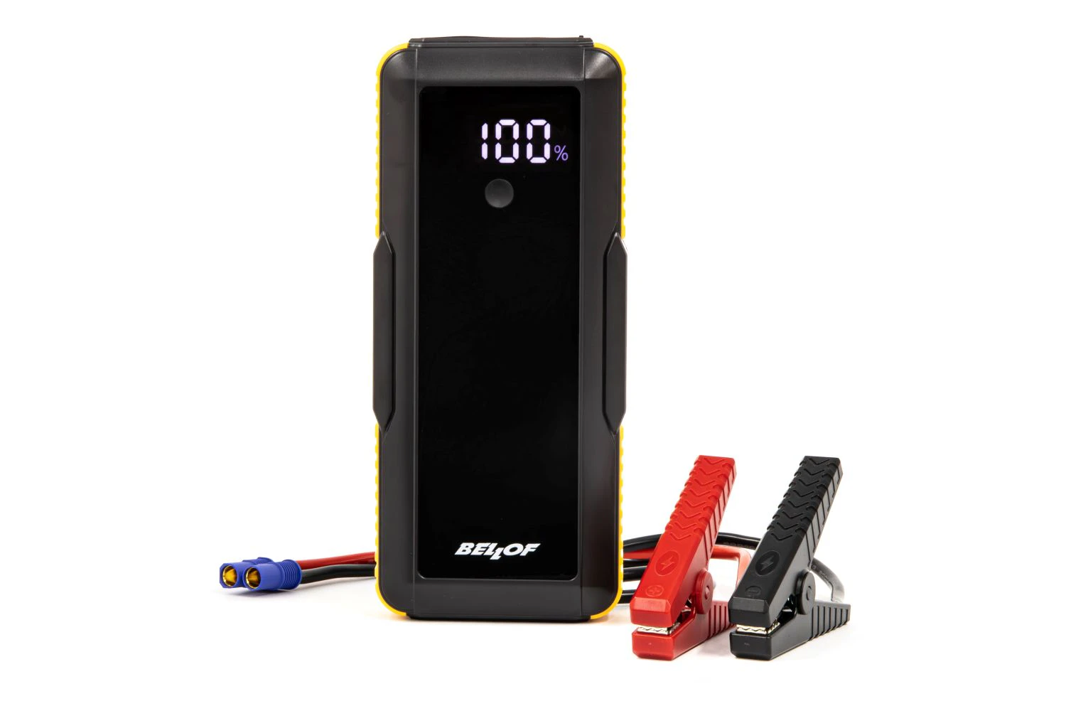本体重量900gと軽量。電池を搭載しておらず、事前の充電も必要ない。本体への蓄電は自車のほか、他車バッテリーやシガーソケット、USBなど多様な方法で可能。12Vのバイクやボート、農耕車、ガ ソ リ ン 車 は 6,000cc、ディーゼル車は3,500ccまで幅広く対応する。