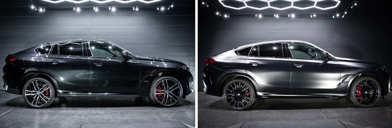 ビフォーアフター:Fenix Scratch Guard施工後のBMW X6M。同じクルマとは思えないほどの仕上がりにオーナーも満足している。
