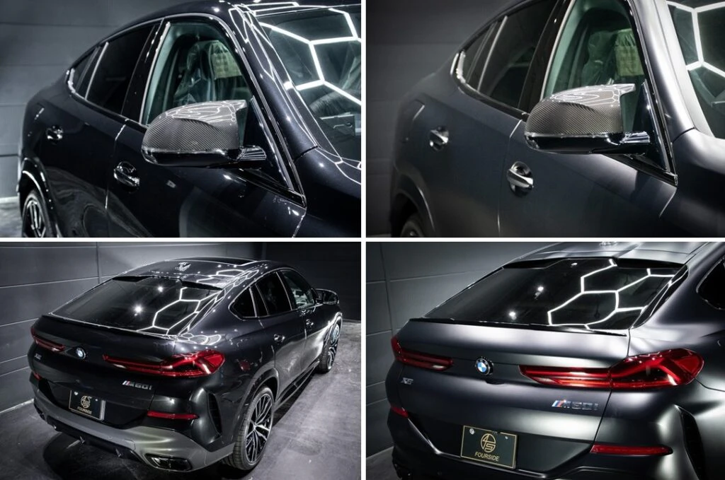 今回のドナーは「BMW X6M」。愛車をもっとカッコよくしたいと思ったオーナーは、ボディを艶消しにしたいとフォーサイドに相談を持ち掛けた。それを受けたフォーサイドはボディの塗装面の保護とマット仕上げが同時にできるPPF「Fenix Scratch Guard」を提案。