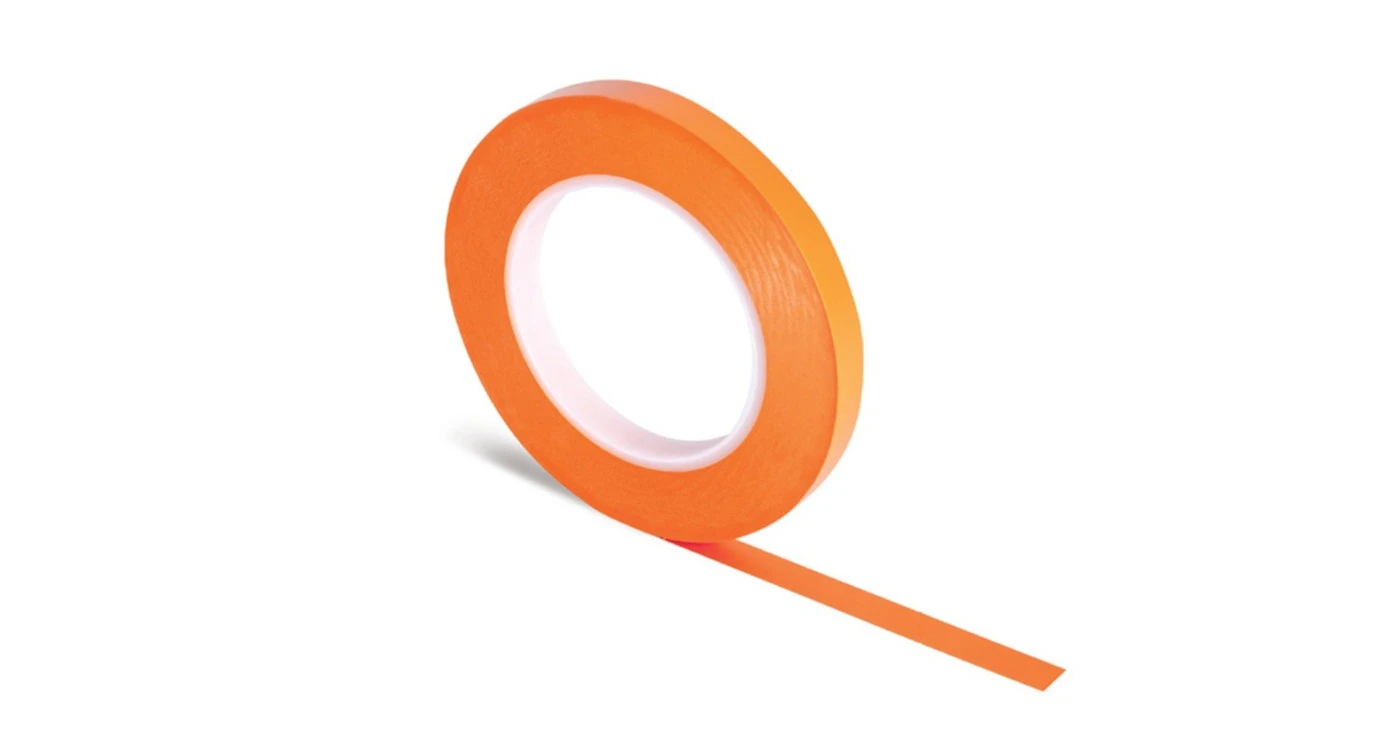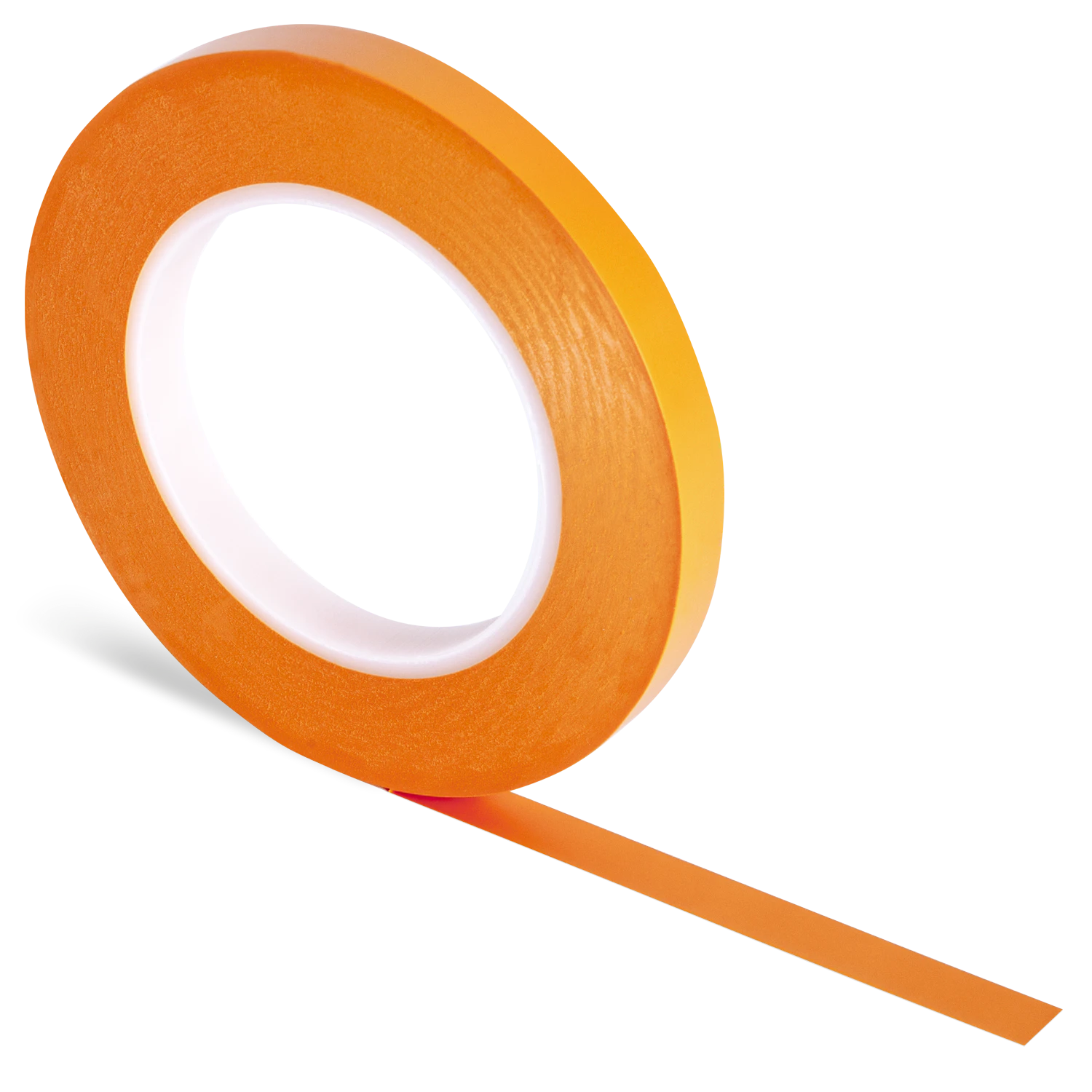 ストレートラインやカーブの見切りに対応し、きれいなラインを表現するのに適する。ノリ残りやケバ立ちが少なく、耐熱温度150℃(1時間以内)で耐久性にも優れる。材質:ポリ塩化ビニル、色:オレンジ。幅:2・3・6・9mm、厚さ:0.13mm(±10%)、長さ:55m。