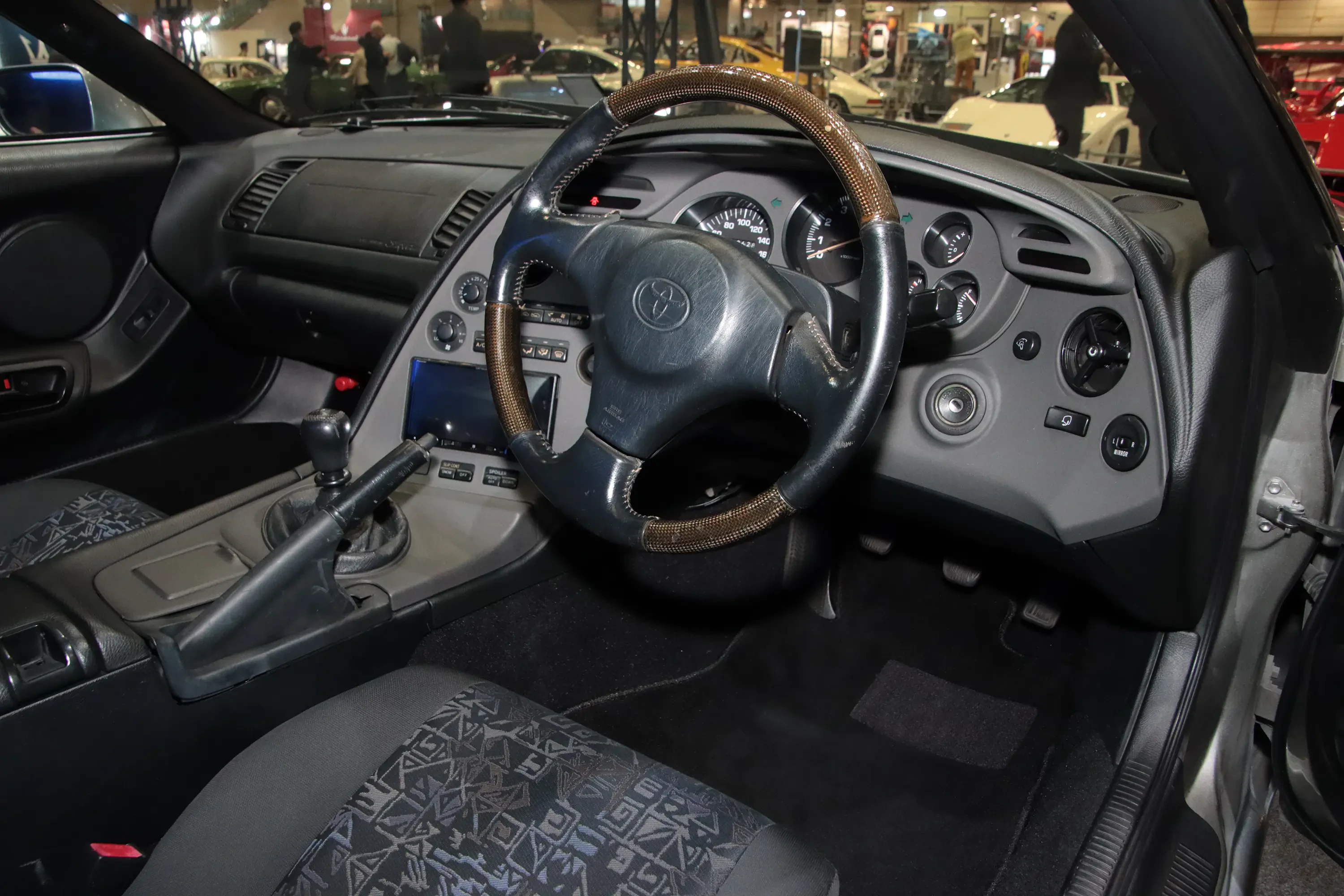 2026年秋頃復刻発売予定のインストルメントパネルなどを用いてレストアされたA80系スープラの運転席まわり
