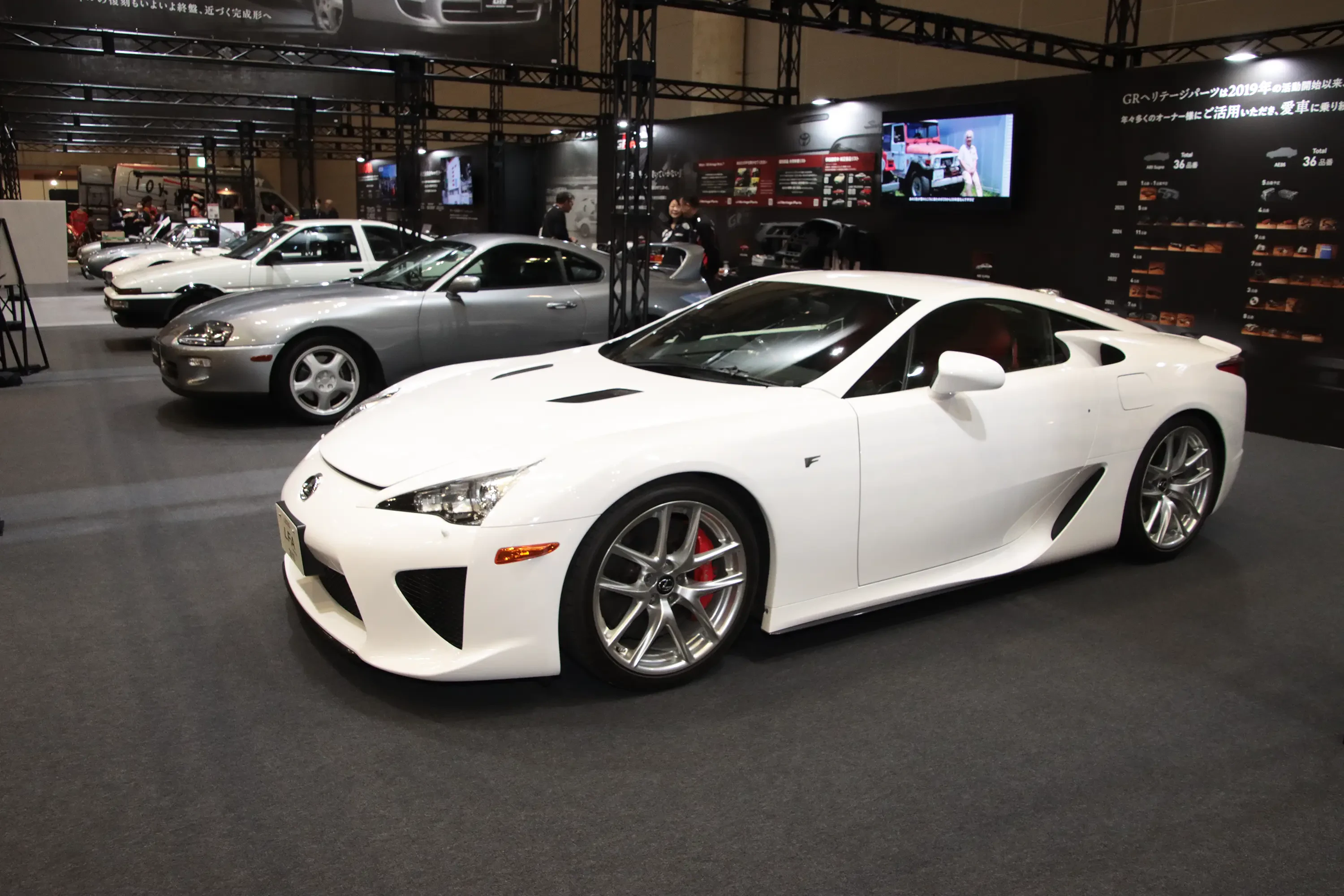 ガズーレーシングは、復刻部品「GRヘリテージパーツ」を用いてレストアしたA80系「スープラ」と、同じくGRガレージ水戸けやき台がレストアを担当したAE86型「スプリンタートレノ」を披露。さらにレクサス「LFA」も展示して、同車の補修部品を現在でも全品供給継続していることをアピールした。