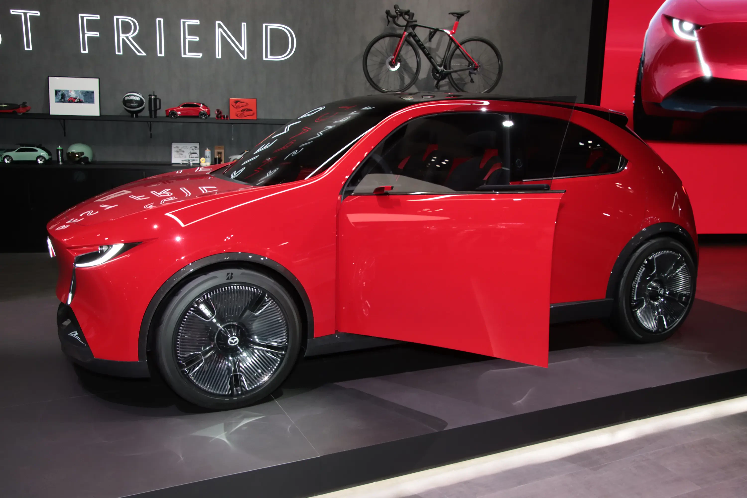 「ビジョンクロスクーペ」は、かつての「RX-8」を彷彿とさせながら、全長×全幅×全高=5050×1995×1480mm、ホイールベース3080mmと大幅に車格アップした、ラージサイズのクロスオーバー4ドアクーペ。