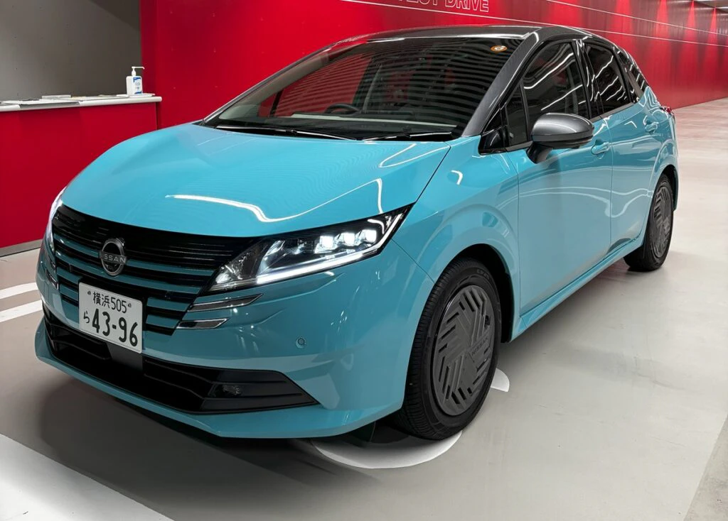 ターコイズブルーが似合う日産ノート。こんなポップな色のクルマが街に増えるといいですよね。