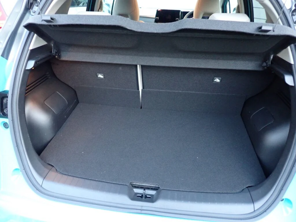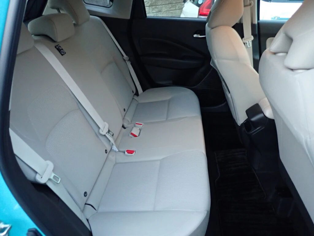 身長170センチのドライバーのシートポジションで後席の足元にはこれだけのスペースがある。ベージュのシートベルトがオシャレ。