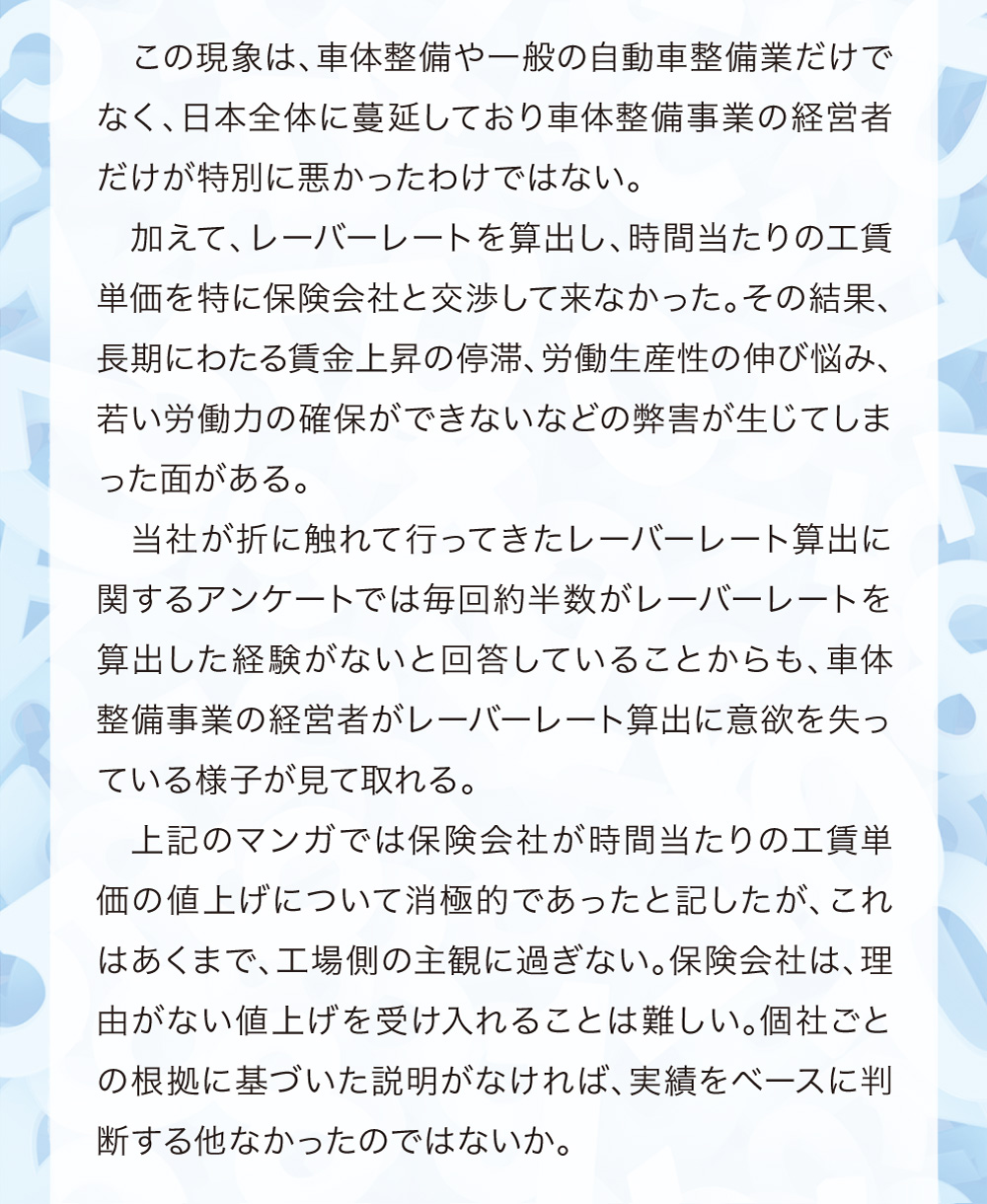 本稿は鈑金塗装業界に身を投じ、現場の作業を一通り知っている主人公らの視点から事故車見積りを学ぶ、実際の現場経験に則した物語である。